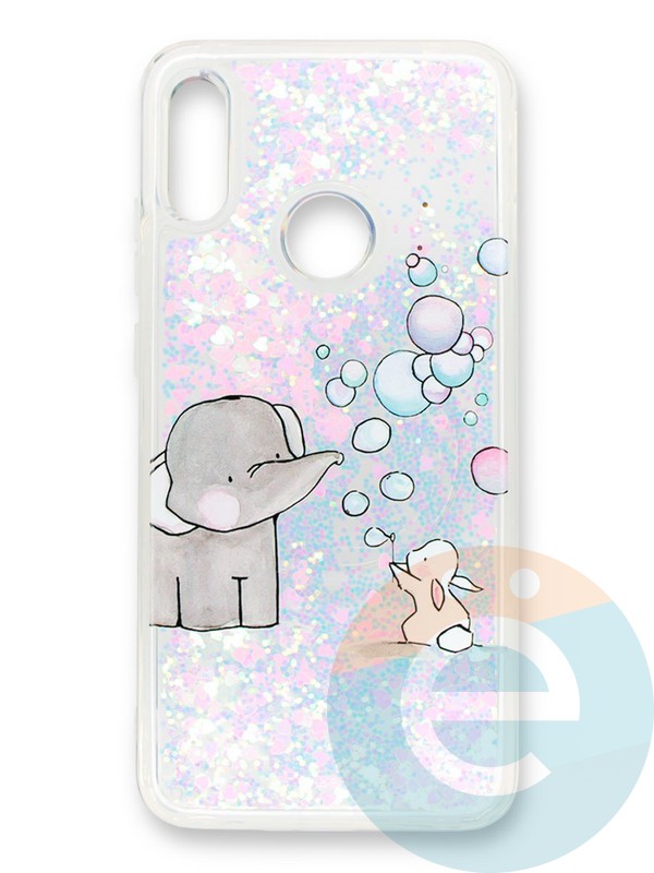 Накладка силиконовая Переливашка с жидкими блёстками на Huawei Y6 2019/ Honor 8A играющий слоненок
