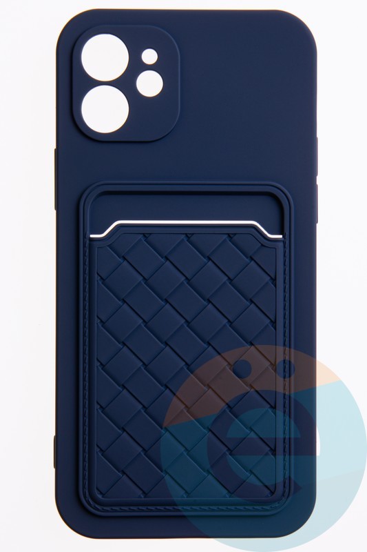 Накладка силиконовая плетеная с кардхолдером для Apple iPhone 12 синяя