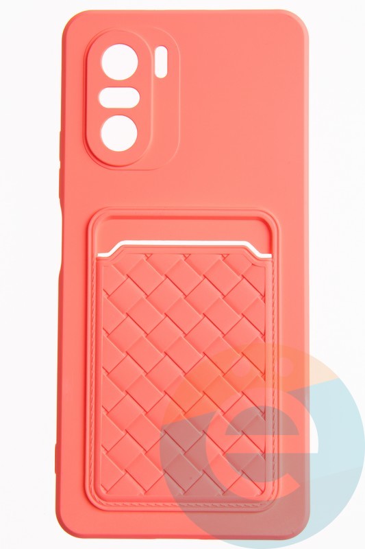 Накладка силиконовая плетеная с кардхолдером для Poco F3/Redmi K40 розовая