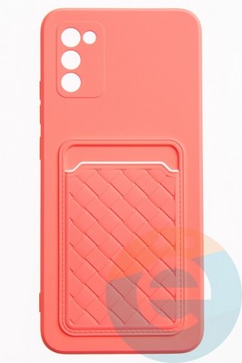 Накладка силиконовая плетеная с кардхолдером для Samsung Galaxy A02S розовая