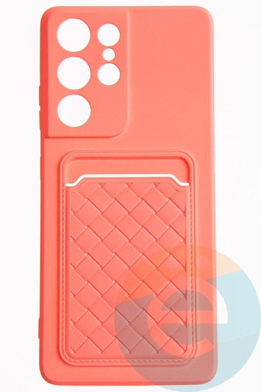 Накладка силиконовая плетеная с кардхолдером для Samsung Galaxy S21 Ultra розовая