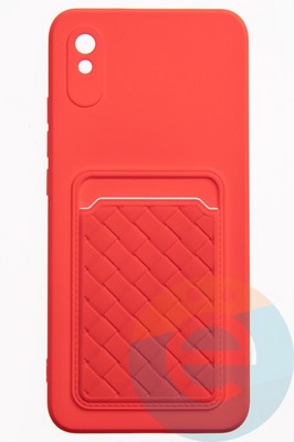 Накладка силиконовая плетеная с кардхолдером для Xiaomi Redmi 9A красная