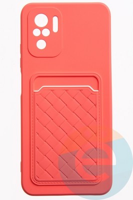 Накладка силиконовая плетеная с кардхолдером для Xiaomi Redmi Note 10 4G/Poco M5S розовая