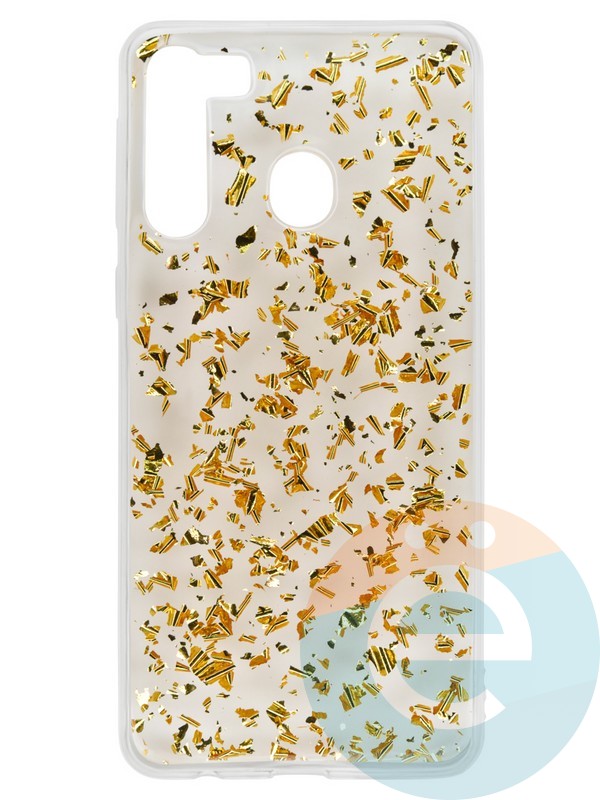 Накладка силиконовая с фольгой для Samsung Galaxy A21 золотистая