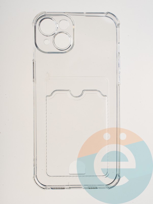 Накладка силиконовая с кардхолдером и усиленными углами для Apple iPhone 15 Plus прозрачная