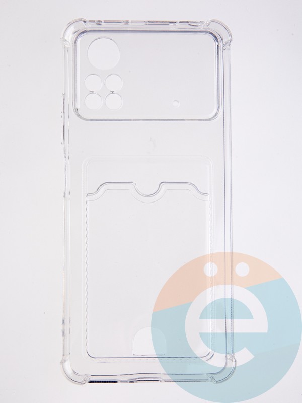 Накладка силиконовая с кардхолдером и усиленными углами для Poco X4 Pro 5G прозрачная