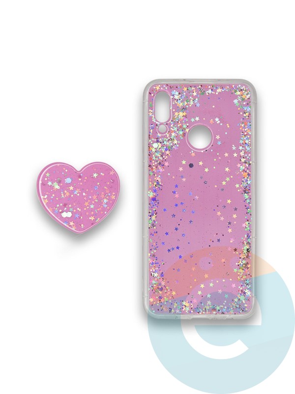 Накладка силиконовая с Поп Сокетом для Huawei P Smart 2019/Honor 10 Lite розовая