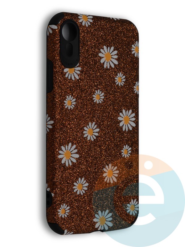 Накладка силиконовая с ромашками для Apple iPhone XR коричневая