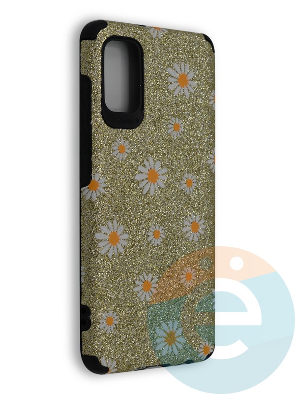 Накладка силиконовая с ромашками для Samsung Galaxy A41 золотистая