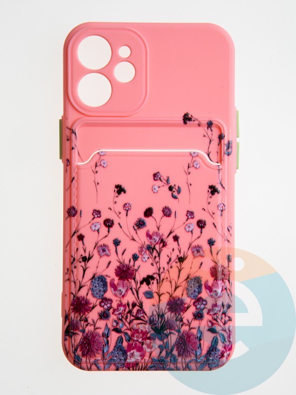 Накладка силиконовая Summer с кардхолдером для Apple iPhone 12 Mini розовая