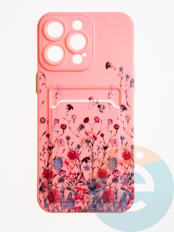 Накладка силиконовая Summer с кардхолдером для Apple iPhone 15 Pro Max розовая