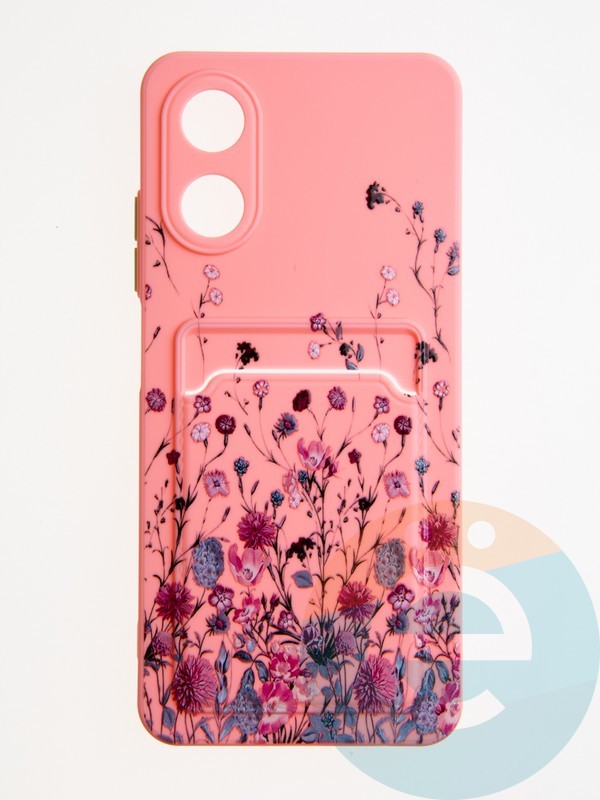 Накладка силиконовая Summer с кардхолдером для Oppo A17K розовая