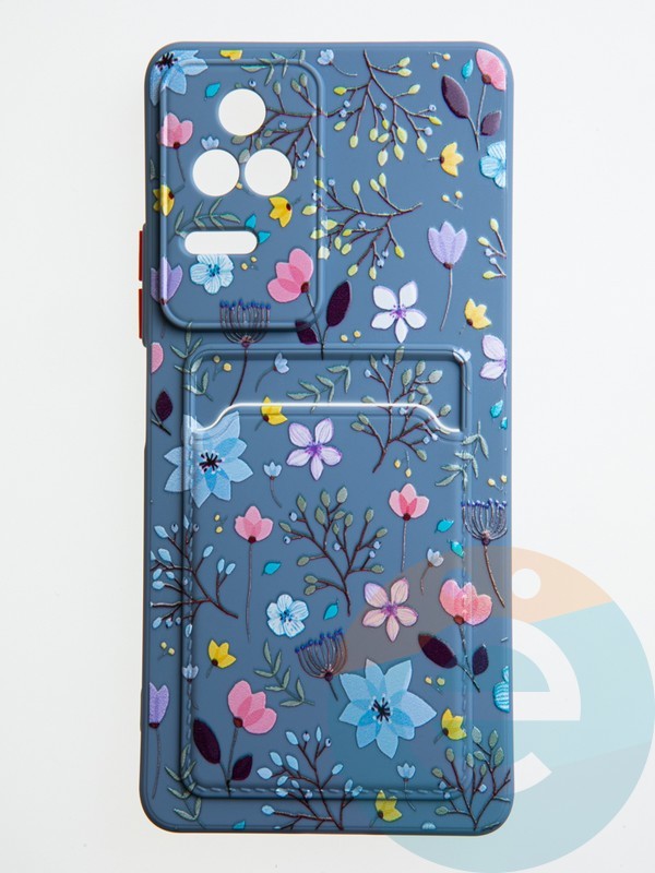 Накладка силиконовая Summer с кардхолдером для Poco F4 синяя