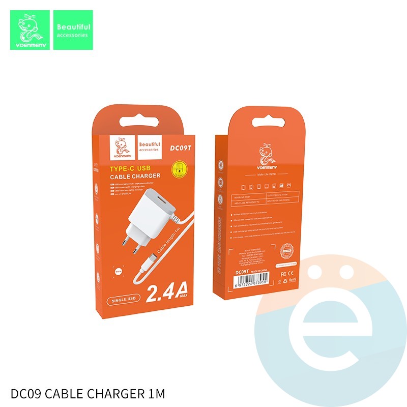 СЗУ Denmen DC09T 2.4A + кабель Type-C белое
