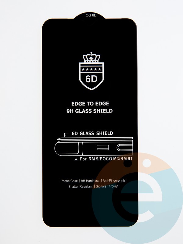 Защитное стекло 6D с полной проклейкой на Xiaomi Redmi 9T/Poco M3 черное