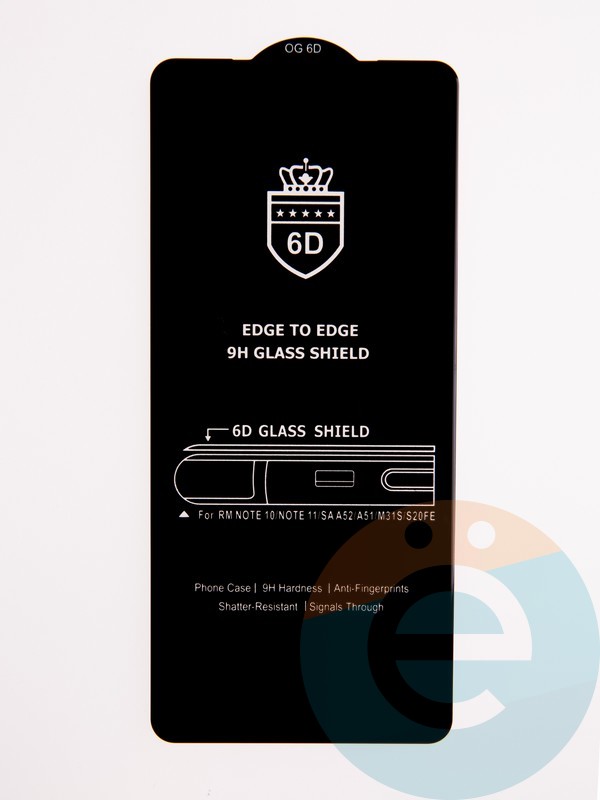 Защитное стекло 6D с полной проклейкой на Xiaomi Redmi Note 10 /Note 10S/Note 11E черное