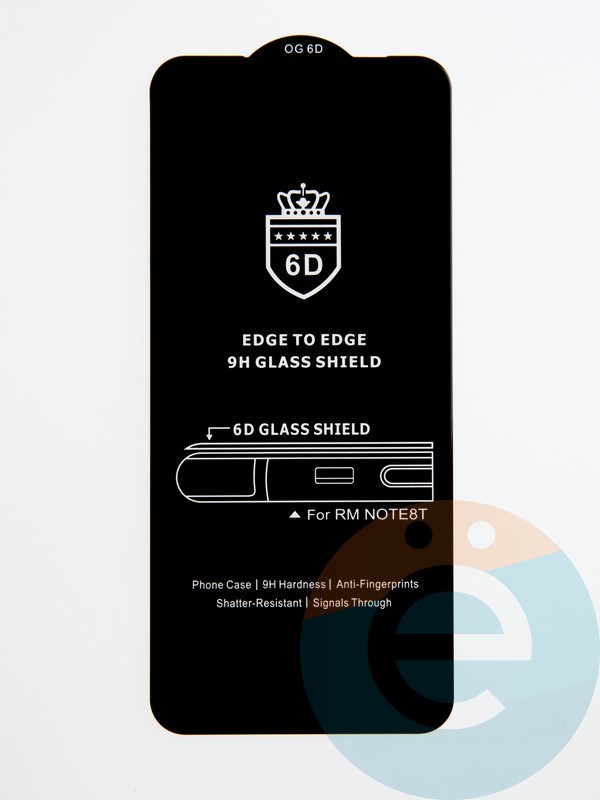 Защитное стекло 6D с полной проклейкой на Xiaomi Redmi Note 8T черное