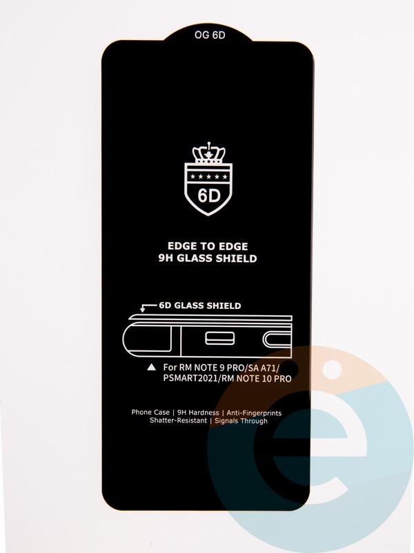 Защитное стекло 6D с полной проклейкой на Xiaomi Redmi Note 9 Pro/Note 9S/Poco F4 черное