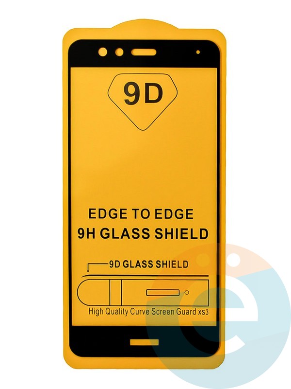 Защитное стекло 9D с полной проклейкой на Huawei P10 lite черное