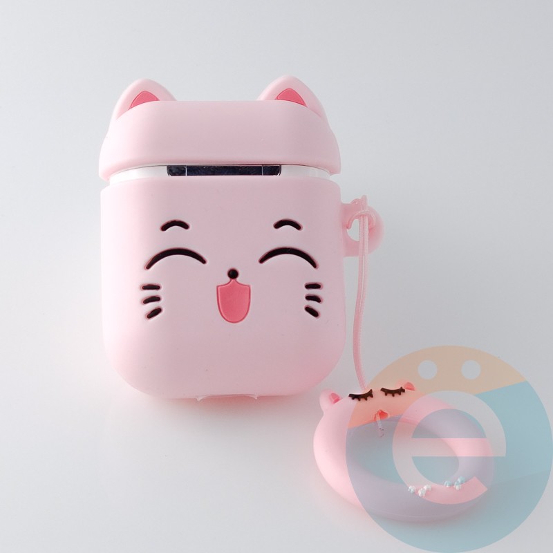 Чехол силиконовый объемный на Apple AirPods 1/2 кошечка розовая