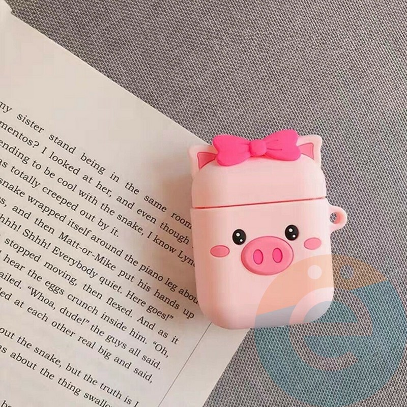 Чехол силиконовый объемный на Apple AirPods 1/2 поросёнок с бантиком 21