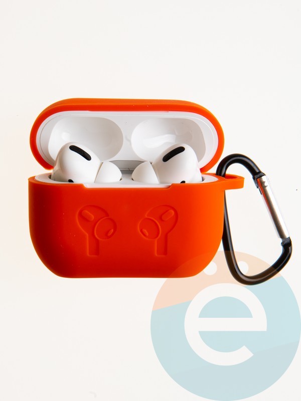 Чехол силиконовый для наушников Apple AirPods Pro 2 с логотипом и карабином оранжевый