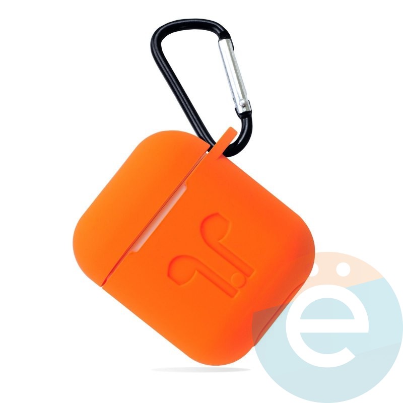 Чехол силиконовый для наушников Apple AirPods с карабином кислотно-оранжевый