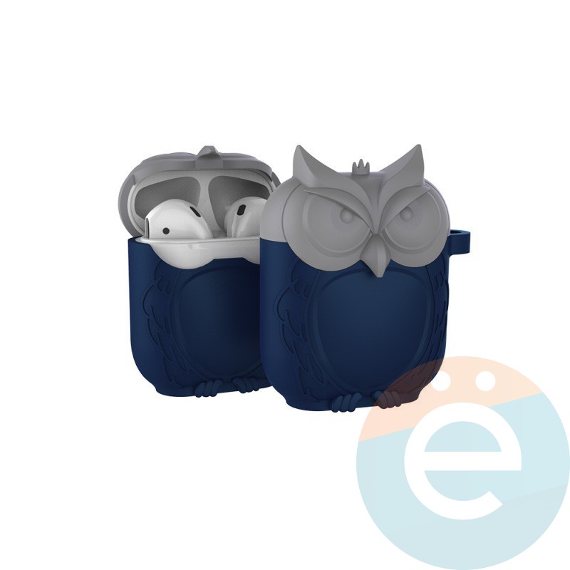 Чехол силиконовый для наушников Apple AirPods Сова серо-синий