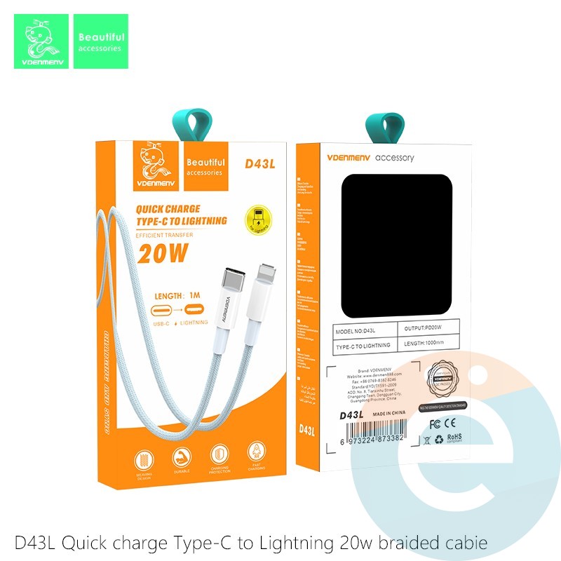 Кабель Denmen D43L Type-C на Lightning 1м розовый