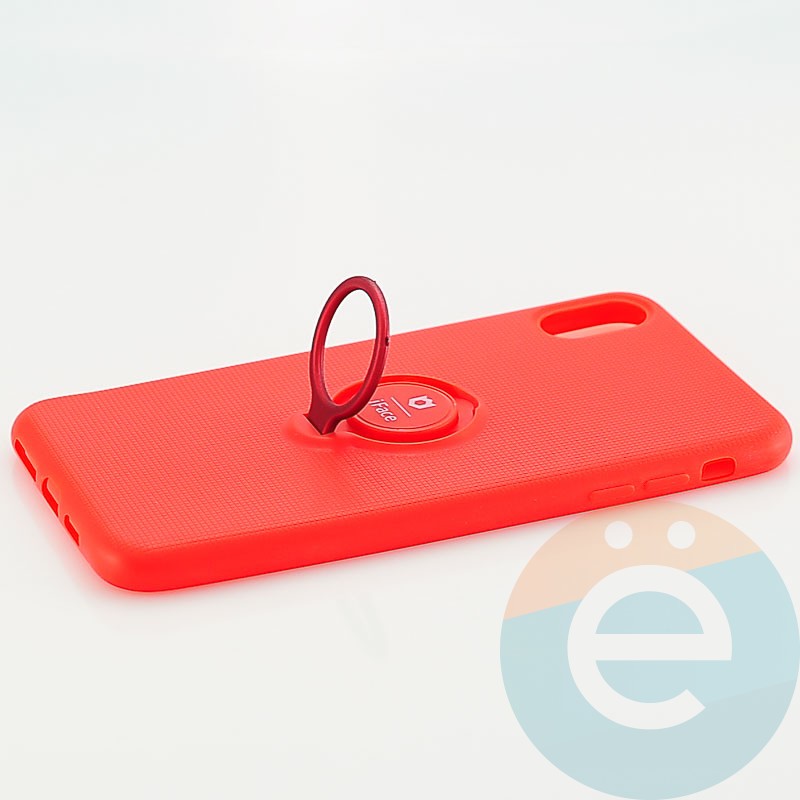 Накладка силиконовая iFace на Apple IPhone Xs Max с металлической пластиной с кольцом красная