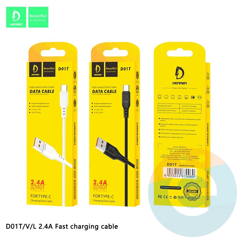 USB кабель Denmen D01T на Type-C 2.4A 1м белый